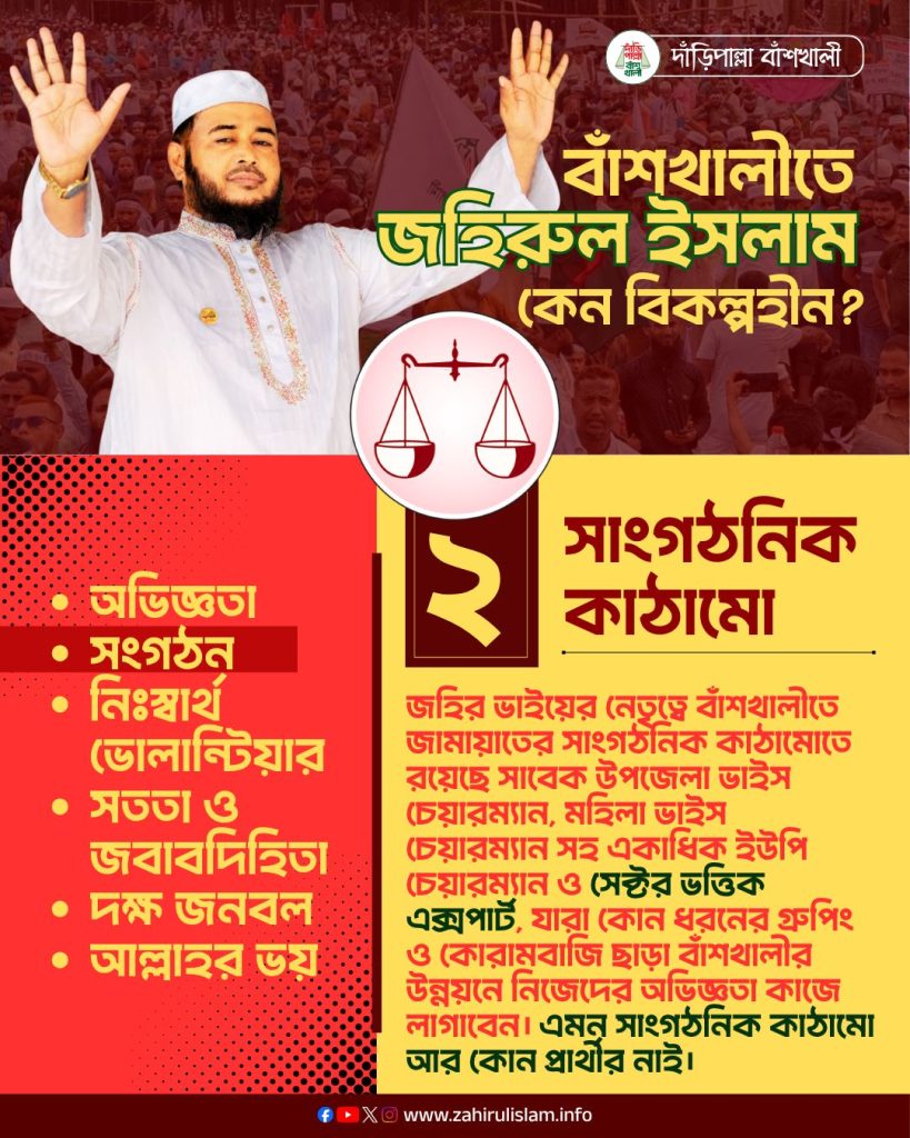 ত্রয়োদশ জাতীয় সংসদ নির্বাচনে বাঁশখালীর প্রার্থীদের মধ্যে সবচেয়ে শক্তিশালী সাংগঠনিক কাঠামো আছে জহির ভাইয়ের বাংলাদেশ জামায়াতে ইসলামীতে। বাঁশখালী জামায়াতের টপ